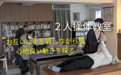 月曜日14時30分からの教室は2人組んでの操体法を行います。1人で実践するのとはまた一味違う操体法の...